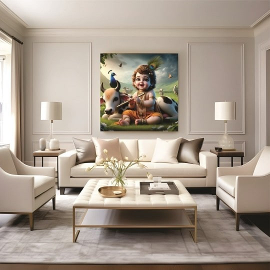 Adorn your space with the innocence and charm of Little Kanha. These adorable wallpapers capture the playful spirit of Bal Gopal, bringing joy, positivity, and devotion to any room.